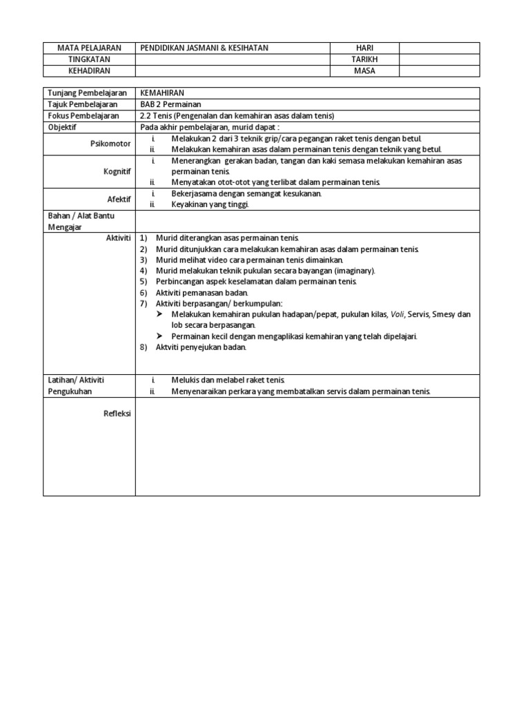 Rph Pendidikan Jasmani Dan Kesihatan Tahun 5